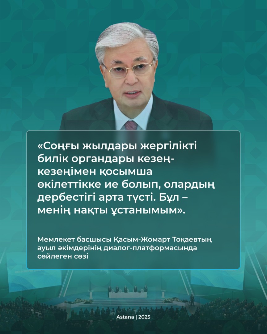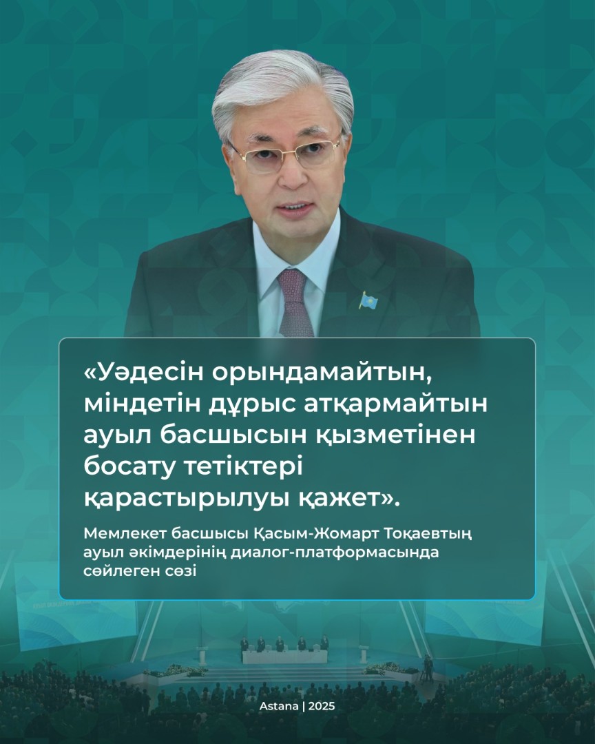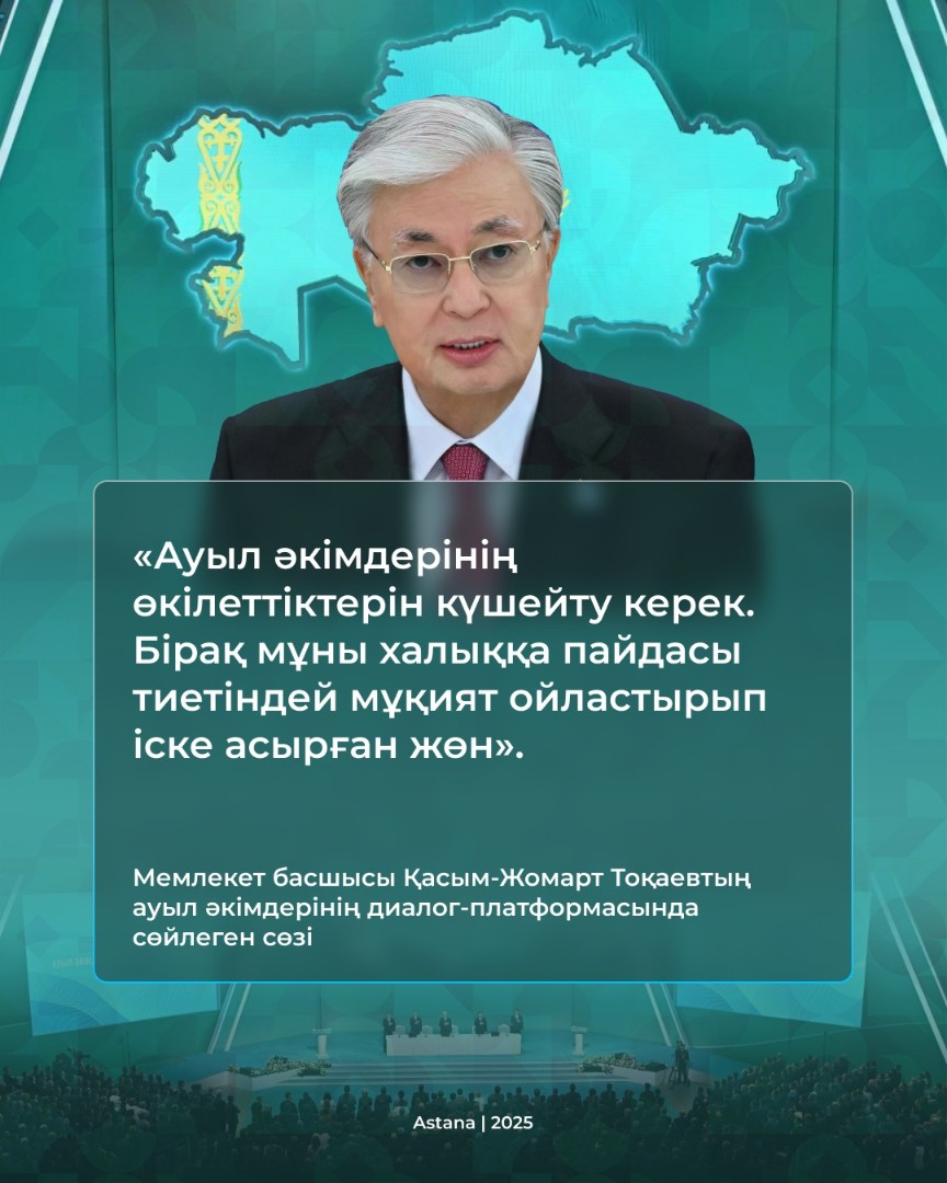Из выступления Главы государства Касым-Жомарта Токаева на диалог-платформе сельских акимов